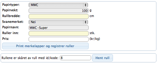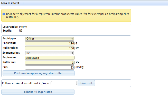 - Ruller inn – Antall ruller som skal legges inn på lager.