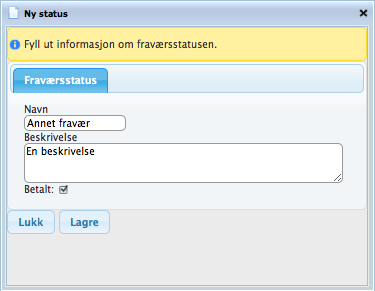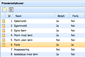 - Betalt – Angir om fraværstypen er betalt fravær eller ikke.
