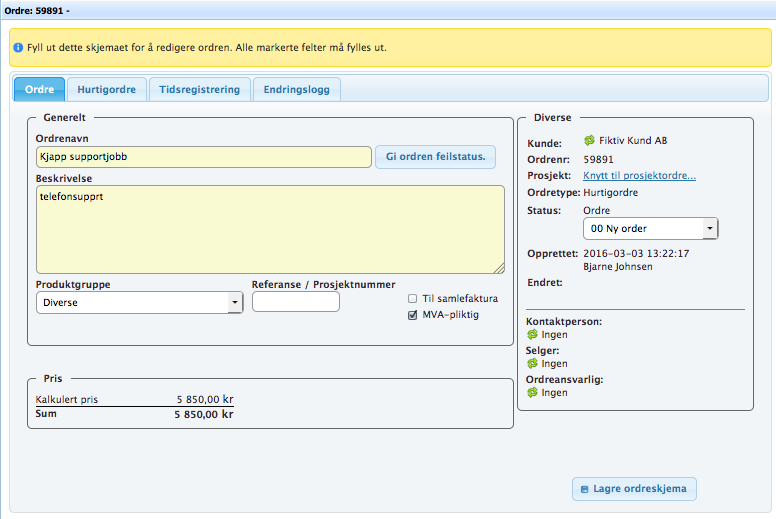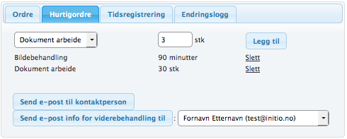 Ordre | Hurtigordre | Tidsregistrering | Endringslogg