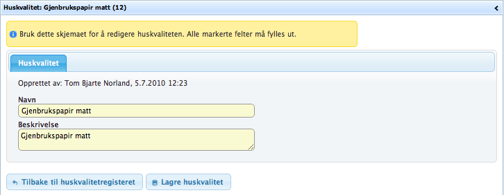 En huskvalitet består av et navn og en beskrivelse. Begge feltene må fylles ut.