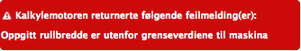Oppgitt rullbredde er utenfor grenseverdiene til maskina
