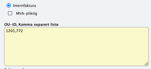 Det er ikke alltid slik at det bør være ett firma i OnTop per ouId i OrgReg. For underenheter i OrgReg vil man med fordel legge inn ouId på institutt- eller faktultetsnivå, alt etter som. Gå til kunderegisteret og filtrer lista på et enhetsnavn fra Excel-fila. Rediger denne kunden. Under fanen «Firma», finn boksen «OU-ID, Komma separert liste».