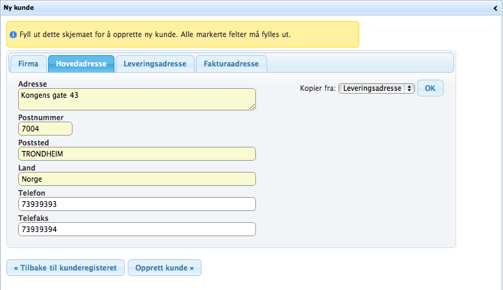 Klikk «Opprett kunde» for å opprette kunden.