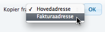 Hvis en adresse er lik eller tilnærmet lik en annen adresse som er fyllt ut på kunden, kan du kopiere denne adressen ved å bruke droppliste til høyre. Velg hvilken adresse du vil hente, og klikk OK.