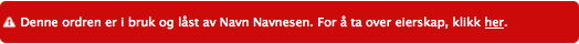 Når ordren er låst på denne måten, får du fortsatt mulighet til å se på og lese all informasjon om ordren, men ikke endre noe. For å kunne endre ordren, klikk «her» i meldingen som dukket opp i toppen.
