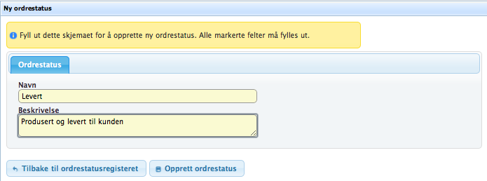 Klikk «Opprett ordrestatus» for å lagre.