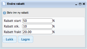 Rabatten er delt inn i startpris/stykkpris/fraktpris for hver enkelt kombinasjon.