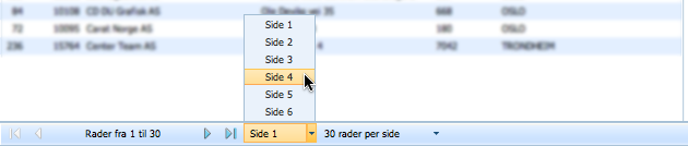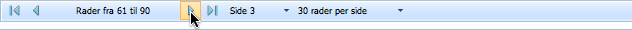 Tabellen viser kun 30 rader per side. For å navigere mellom sidene uten å filtrere, bruk verktøylinjen under tabellen for å bla én og én side frem eller tilbake med