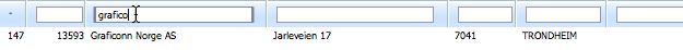 Under kolonnetitlene finnes felt for filtrering av innhold. Begynn å skrive for eksempel et kundenavn (se ill.), og innholdet i tabellen vil oppdateres i sanntid etterhvert som du skriver, og kun vise rader som har dette innholdet i den aktuelle kolonnen.